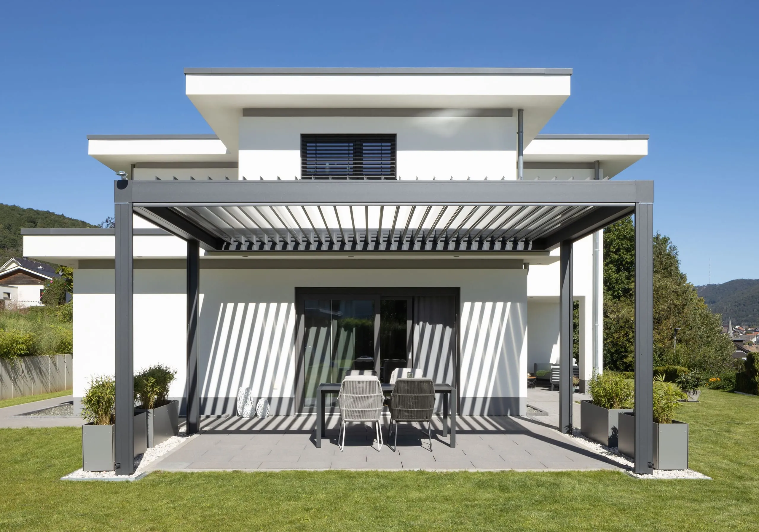 Es gibt zwei Möglichkeiten, ein Lamellendach an eine Fassade anzubinden: Entweder wird es mit Befestigungsmitteln direkt an der Fassade montiert oder vor der Fassade errichtet. Im ersten Fall verbindet das Montageteam ein spezielles Profil fest mit der Anschlusswand des Hauses – unter der Voraussetzung, dass diese ausreichend tragfähig ist. Hier können die Pfosten an der Anschlusswand auf Wunsch auch entfallen. Je präziser die Montage des Wandanschlussprofils ist, desto einfacher gestaltet sich laut Weinor die weitere Installation. Es sei dabei unerlässlich, die Herstellerangaben einzuhalten und innerhalb der Montagetoleranzen zu arbeiten.