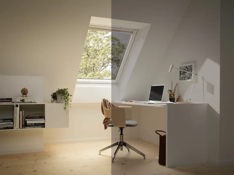 Die Tönung der Velux-Dachfenster mit SageGlass lässt sich per Knopfdruck aktivieren und den aktuellen Licht- und Wetterverhältnissen anpassen. "Uns hat diese Technik überzeugt. Deshalb sind wir auch sehr froh, unseren Kunden mit der elektrochromen Verglasung eine weitere innovative Sonnenschutz-Lösung für unsere Dachfenster anbieten zu können", erklärt Oliver Steinfatt, Leiter Produktmarketing Fenster der Velux Deutschland GmbH. Die Dachfenster mit SageGlass gibt es in drei Standardgrößen, sowohl für Holz- als auch für Kunststofffenster. Die Verkabelung für SageGlass ist bereits vormontiert, Schalter und Elektroanschlussprodukte sind im VELUX-Lieferumfang enthalten. Für die Energieversorgung genügt eine normale Steckdose.