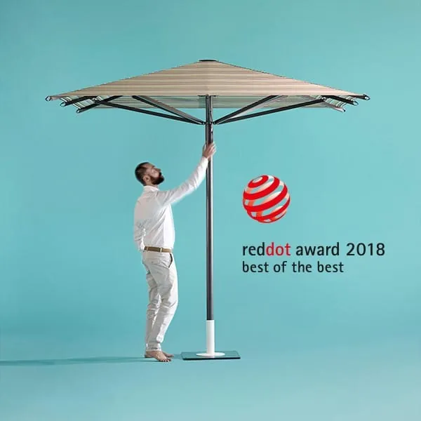 Als Nebeneffekt wird dem Sicherheitsaspekt Rechnung getragen, da er kontrolliert öffnet und schließt. Einzelne Bauteile wie Handgriff, Streben-Verbindungsstellen und Endkappen des Schirms können individualisiert werden. Durch die Designkomponenten - auch in Kombination mit den kolorierten Endkappen - setzt der Typ S16 gewollte Akzente in seiner Umgebung. Aufgrund der Funktionalitäten und des Individualisierungsgrades wurde der Sonnenschutzhersteller durch die Jury des diesjährigen Red Dot Design Awards als Gewinner gekürt.