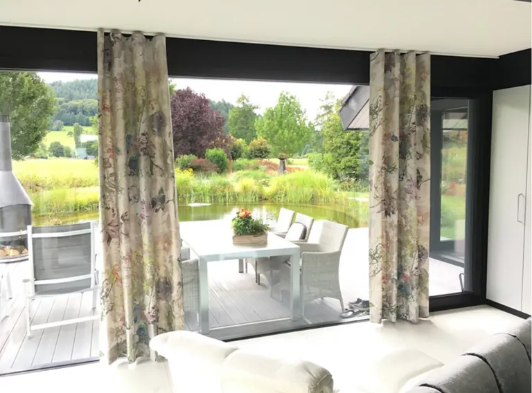 Mit Stoff die Wohnlichkeit und die Gemütlichkeit erhöhen, ohne die Aussicht dabei zu verdecken: Rolf Schrempp, Inhaber von Bieser Raumausstattung in Offenburg erklärt, wie er das umgesetzt hat.
