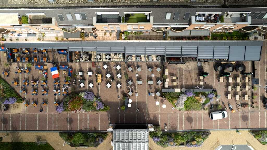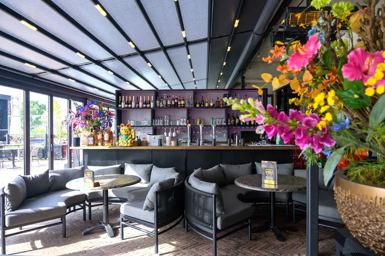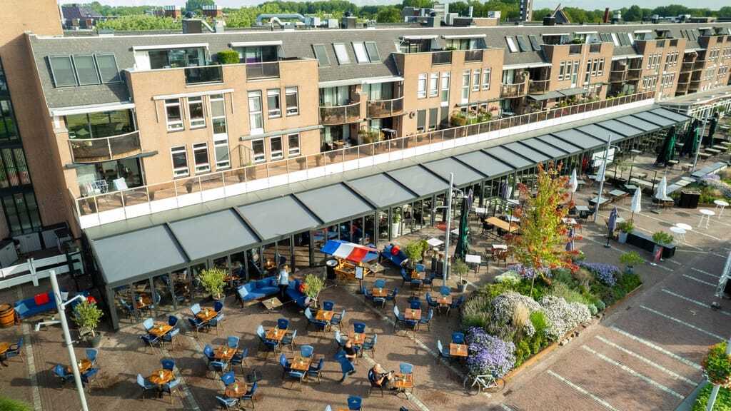 Mit 60 Meter durchgehender Länge ist die neue Gastronomieterrasse die wohl längste ihrer Art in den Niederlanden und gliedert sich an vier gehobene Restaurants an. Um den Gästen ein wetterunabhängiges gastronomisches Erlebnis zu bieten, wurde eine Terrassenüberdachung konzipiert, die durch hohe Flexibilität und Langlebigkeit überzeugt. Ausgewählt wurde ein Falt- und Aluminiumtürensystem von Cornels, das von neun faltbaren Markisendächern mit integrierter LED-Beleuchtung überdacht wird, die sich über eine Fläche von 400 Quadratmeter erstrecken.