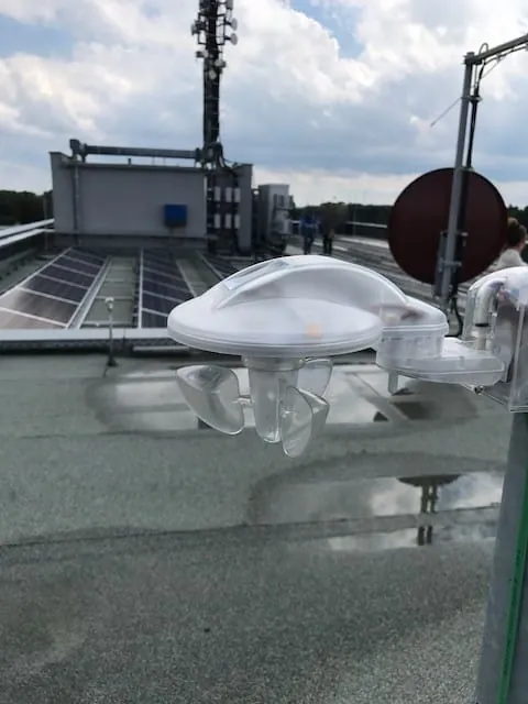 Der Einsatz der seilgeführten Screens am Rathaus stellt also kein Problem dar. Jetzt war zu klären, woher die Probleme mit der Steuerung kommen. Die Wind-/Sonnensteuerung hatte ein auf Gebäudeautomatisierung spezialisiertes Fachunternehmen realisiert, welches dem Sachverständigen aus zahlreichen – auch problematischen – Einsatzfällen als seriös und fachversiert bekannt war. Auch in diesem Fall gab es nichts auszusetzen. Die Anlagen selbst waren fachgerecht ausgeführt: Die Screens sind innerhalb der Fensterlaibungen des sechsgeschossigen Gebäudes windgeschützt montiert. Die Anordnung der Sensorik fand der Sachverständige ebenfalls bestimmungsgemäß und absolut unauffällig vor. Die Wind-/Sonnensteuerung ist mittig auf dem Dach auf einem etwa 1,2 Meter hohen Mast frei montiert.