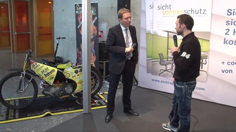 Am Eröffnungstag der R+T 2015 lud sicht+sonnenschutz zu einer spektakulären Präsentation an seinen Messestand. Der Speedway-Pro Martin Smolinski war dort u.a. mit einem Motorrad aus der Weltmeisterschaft vertreten. Der Kapitän der deutschen Speedway-Nationalmannschaft beantwortete die Fragen von sicht+sonnenschutz-Chefredakteur Reinhold Kober und stand im Anschluss für Fragen, Fotos und Autogramme zur Verfügung.